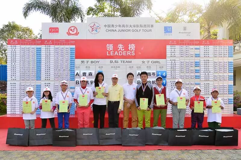 北京时间2月13日,由国家体育总局小球运动管理中心、中国高尔夫球协会主办,广东省高尔夫球协会协办,深圳市美利华体育发展有限公司承办的2015全国青少年高尔夫精英挑战赛首站在阳江涛景高尔夫度假村圆满收杆。中高协青少年项目负责人刘荣耀先生、广东省高协竞赛部副部长邓汉敏、美利华体育总经理高薇、阳江涛景球会总经理黄和峰、比奇汉董事长胡湘等出席了颁奖典礼。夺冠的选手们除了披上黄夹克,将有数名选手可获得AJGA参赛资格,直通美国AJGA参与其OPEN级别赛事。